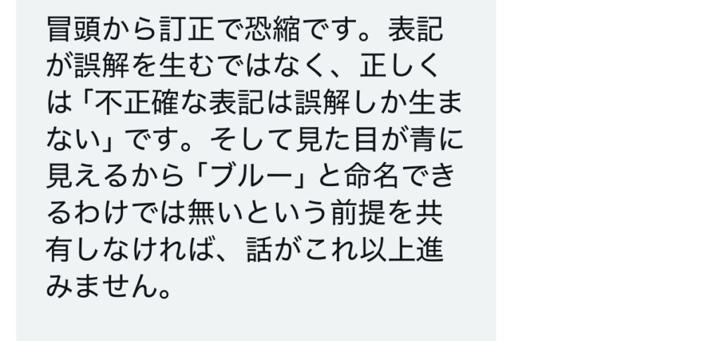 資料3 「見た目が青く見えること」と「ブルーと命名すること」を切り分けるべきとする主張