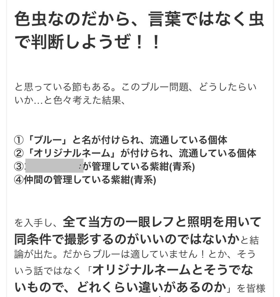 そこに、トップブリーダーでありYouTubeなどでも発信している方が、「色虫に名前を付けること」を強く否定する内容のブログ記事を紹介したことで、その投稿は大きく拡散され、議論は一気に広がっていきました。