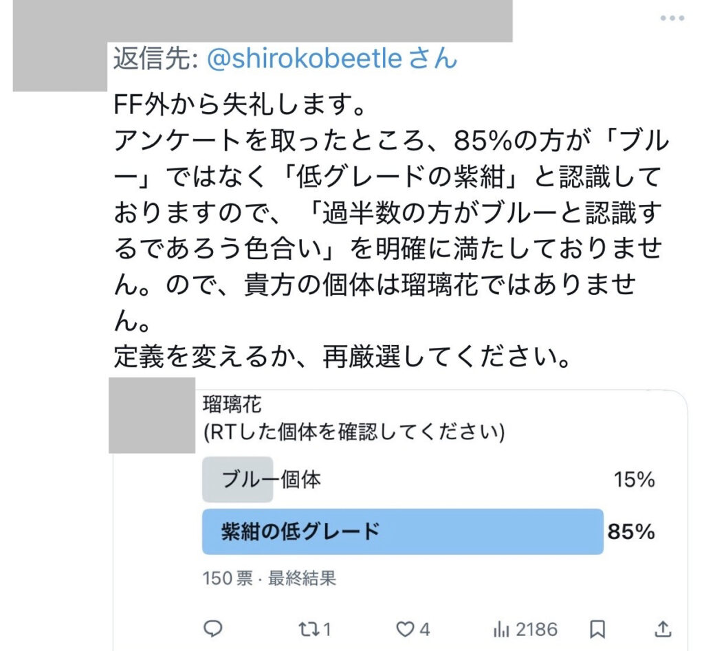 資料1 アンケート結果を根拠に、個体名の定義変更および再選別を求める投稿