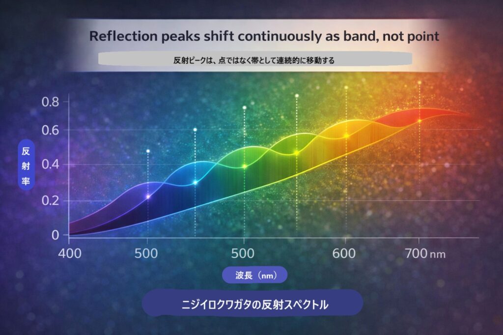 反射されやすい波長帯が少しずつ滑らかに移動している