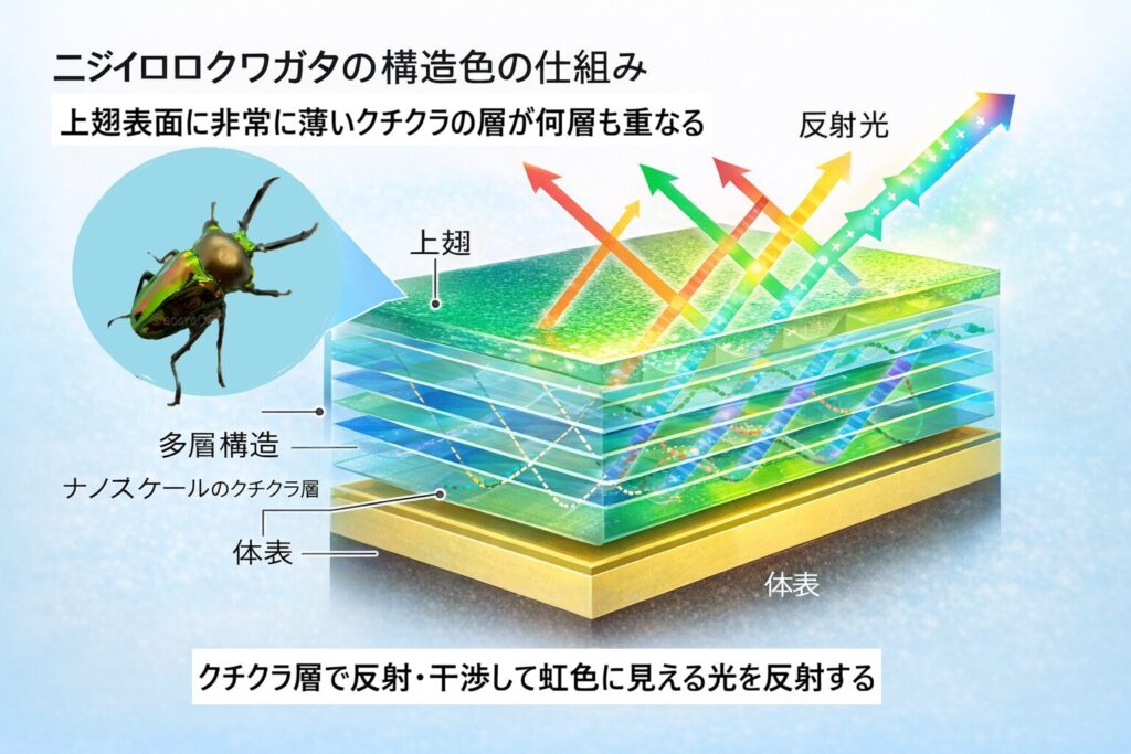 ニジイロクワガタの構造色は、